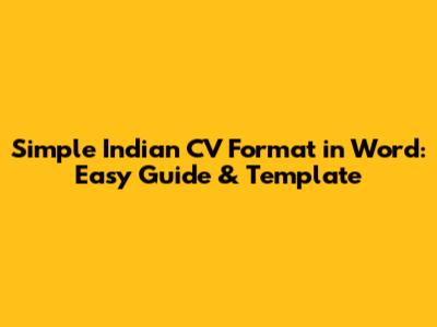Simple Indian CV Format In Word: Easy Guide & Template