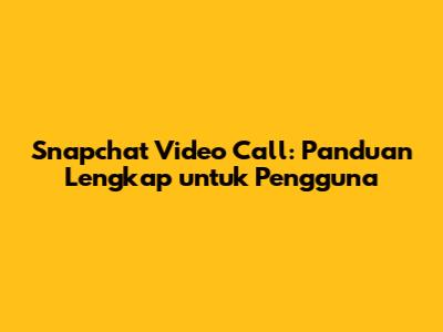 Snapchat Video Call: Panduan Lengkap Untuk Pengguna