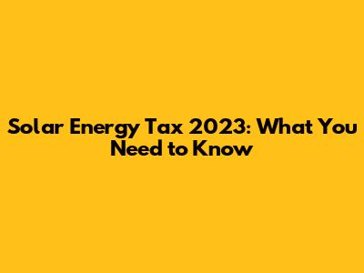 Solar Energy Tax 2023: What You Need To Know