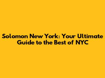 When you think of Solomon New York, what comes to mind? Is it the dazzling lights of Times Square, the serene beauty of Central Park, or the artistic vibes of Greenwich Village? New York City is a melting pot of cultures, experiences, and opportunities. It's a place where dreams are made, and memories are created. Whether you're a first-time visitor or a seasoned traveler, there's always something new to discover in this incredible city.