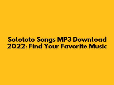 Solototo Songs MP3 Download 2022: Find Your Favorite Music
