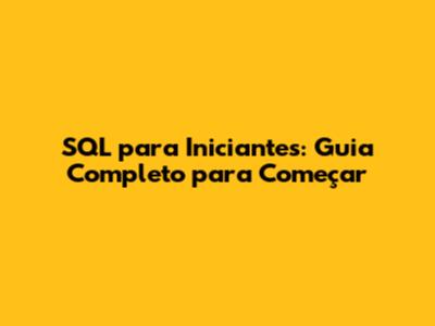 SQL Para Iniciantes: Guia Completo Para Começar