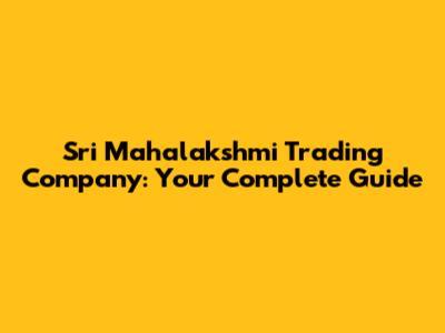 Sri Mahalakshmi Trading Company: Your Complete Guide
