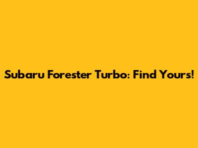 Subaru Forester Turbo: Find Yours!