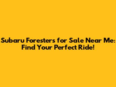 Subaru Foresters For Sale Near Me: Find Your Perfect Ride!