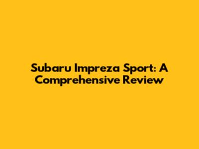 Hey guys! Ever wondered about the Subaru Impreza Sport? Well, buckle up because we're diving deep into everything you need to know about this awesome ride. From its sleek design to its impressive performance and all the nitty-gritty details, we’ve got you covered. Let’s get started!