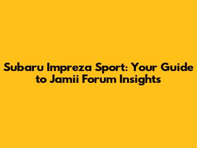 Subaru Impreza Sport: Your Guide To Jamii Forum Insights