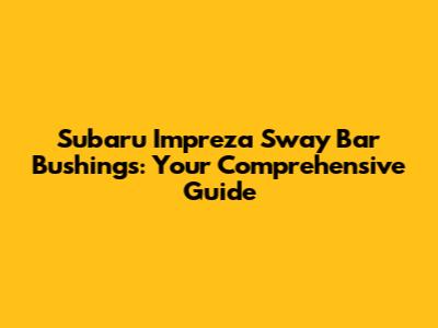 Subaru Impreza Sway Bar Bushing: Ultimate Guide & Repair Tips