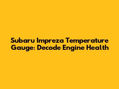 Subaru Impreza Temperature Gauge: Decode Engine Health