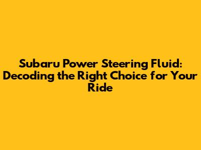 Subaru Power Steering Fluid: Decoding the Right Choice for Your Ride