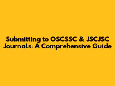 Submitting To OSCSSC & JSCJSC Journals: A Comprehensive Guide