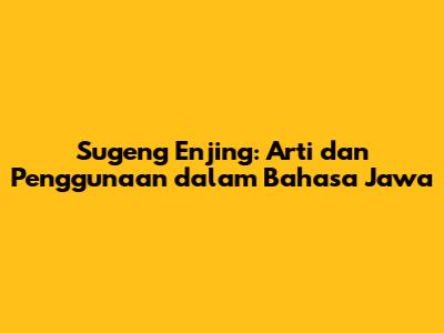 Sugeng Enjing: Arti Dan Penggunaan Dalam Bahasa Jawa