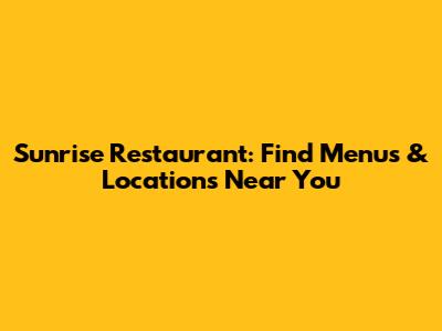 Sunrise Restaurant: Find Menus & Locations Near You