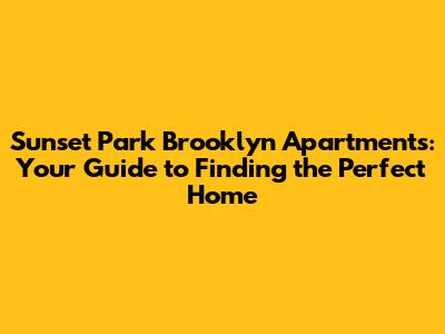 Sunset Park Brooklyn Apartments: Your Guide To Finding The Perfect Home