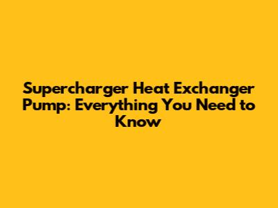 Supercharger Heat Exchanger Pump: Everything You Need To Know