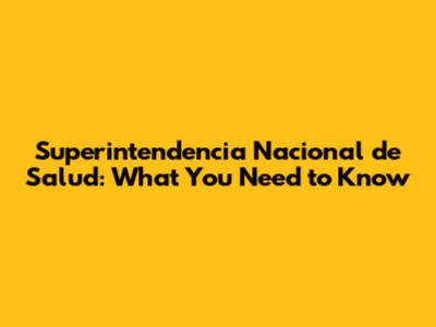 Superintendencia Nacional De Salud: What You Need To Know