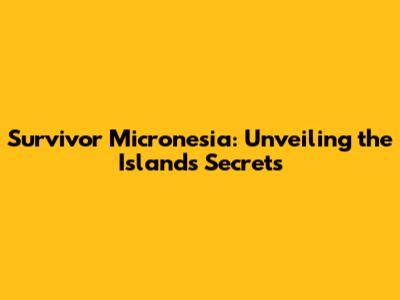 Survivor Micronesia: Unveiling The Island's Secrets
