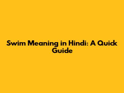 Swim Meaning In Hindi: A Quick Guide