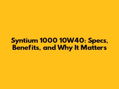 Syntium 1000 10W40: Specs, Benefits, And Why It Matters