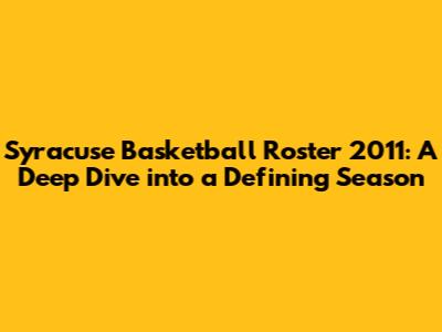 Syracuse Basketball Roster 2011: A Deep Dive into a Defining Season