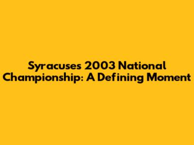 Syracuse's 2003 Championship Run: A Defining Moment
