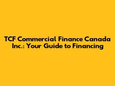 Hey there, finance enthusiasts! Ever heard of TCF Commercial Finance Canada Inc.? If you're a business owner or someone interested in the world of commercial financing, then this name should be on your radar. But what exactly does TCF Commercial Finance Canada Inc. do? And, more importantly, how can they help you? Let's dive in and explore the ins and outs of this financial powerhouse, covering everything from the services they offer to how you can potentially benefit. We'll break down the jargon, provide real-world examples, and give you a clear understanding of what makes TCF Commercial Finance Canada Inc. a player in the Canadian commercial finance landscape.