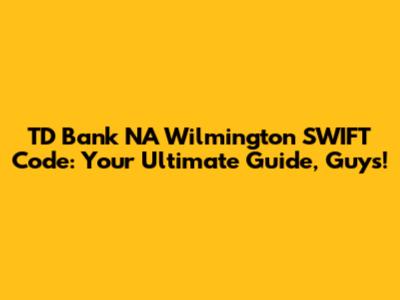 TD Bank NA Wilmington SWIFT Code: Your Guide