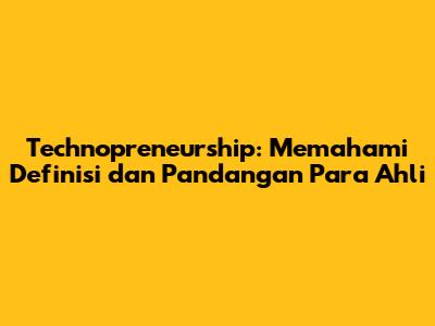 Technopreneurship: Pengertian & Pandangan Para Ahli