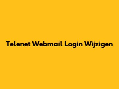 Telenet Webmail Login Wijzigen