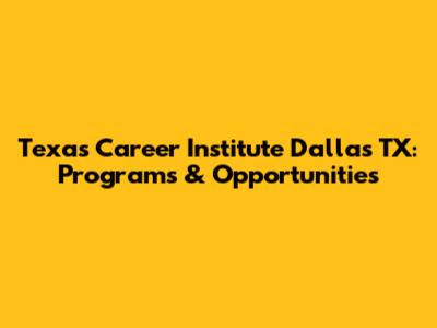 Texas Career Institute Dallas TX: Programs & Opportunities