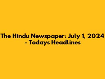 The Hindu Newspaper: July 1, 2024 - Today's Headlines