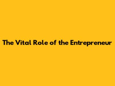 The Vital Role Of The Entrepreneur