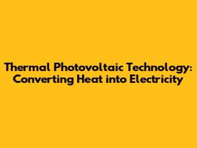Thermal Photovoltaics: Harnessing Heat For Electricity