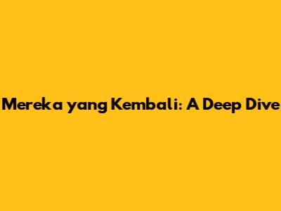 Have you ever wondered about the allure of returning – mereka yang kembali? It's a concept that resonates deeply within the human spirit, touching on themes of nostalgia, regret, hope, and the enduring search for belonging. This exploration delves into the multifaceted nature of returning, examining its psychological underpinnings, cultural significance, and the personal journeys that define it. We'll unpack the reasons why individuals choose to revisit their past, the challenges they face upon arrival, and the potential for transformation that lies within the act of returning.