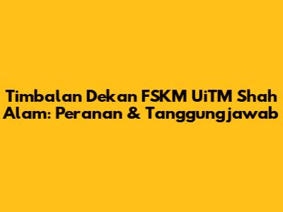 Artikel ini ditulis untuk memberikan gambaran umum tentang peranan dan tanggungjawab Timbalan Dekan di FSKM UiTM Shah Alam. Jika anda mempunyai maklumat lanjut atau pengalaman yang ingin dikongsikan, sila berikan maklum balas anda di ruangan komen di bawah. Mari kita sama-sama membincangkan dan menghargai sumbangan para pemimpin akademik ini.