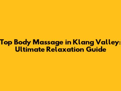 Top Body Massage In Klang Valley: Ultimate Relaxation Guide