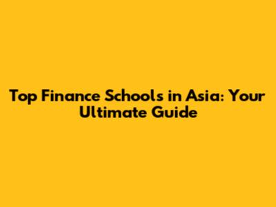 Top Finance Schools In Asia: A Comprehensive Guide
