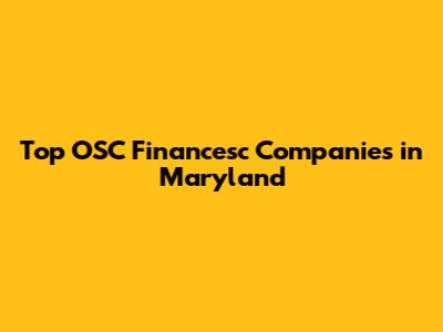Top OSC Financesc Companies In Maryland
