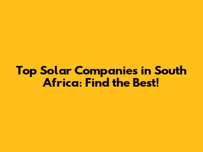 Top Solar Companies In South Africa: Find The Best!