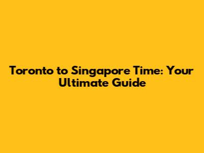 Toronto To Singapore Time: Your Ultimate Guide