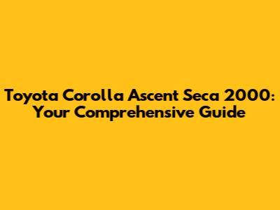 Toyota Corolla Ascent Seca 2000: Everything You Need To Know