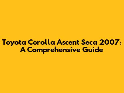 Toyota Corolla Ascent Seca 2007: A Comprehensive Guide