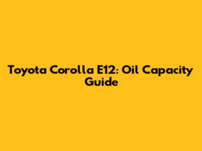 Toyota Corolla E12: Oil Capacity Guide