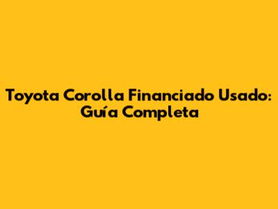 Toyota Corolla Financiado Usado: Guía Completa