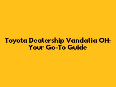 Hey there, car enthusiasts and potential Toyota buyers! If you're searching for a Toyota dealership in Vandalia, OH, you've landed in the right spot. Finding a trustworthy dealership is the first step towards a smooth car-buying or servicing experience. This guide will walk you through everything you need to know about navigating the local Toyota landscape, from understanding what makes a great dealership to how to find the best deals and services. Let's dive in and explore the ins and outs of Toyota dealerships in Vandalia, Ohio! We'll cover everything from the types of services offered to what you should look for when choosing a dealership and tips on getting the most out of your visit. So, buckle up, and let's get started!