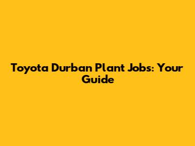 Toyota Durban Plant Jobs: Your Guide