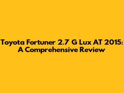 Hey guys! Today, we’re diving deep into the Toyota Fortuner 2.7 G Lux AT 2015. If you're in the market for a reliable, spacious, and robust SUV, this model might just be the perfect fit. Let's explore everything this car has to offer, from its performance and features to its overall driving experience. So buckle up, and let’s get started!