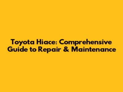 Toyota Hiace: Comprehensive Guide To Repair & Maintenance