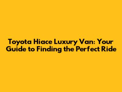 Toyota Hiace Luxury Van: Your Guide To Finding The Perfect Ride