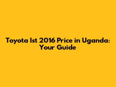 Toyota Ist 2016 Price In Uganda: Your Guide